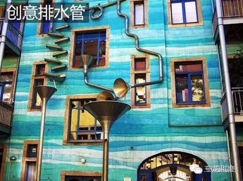 排水管道還可以發揮創意為建筑物的外立面起到裝飾作用。下圖為德國音樂排水管,下雨時不僅能起到收集雨水的作用,還能“演奏”一曲雨中交響曲。