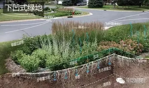 雨水花園做為低影響開發最為常見的設計手段,如今已延展出了多種形式。狹義的雨水花園僅為規模有限、結構簡單的淺凹綠地,適用于小區或私宅綠化。