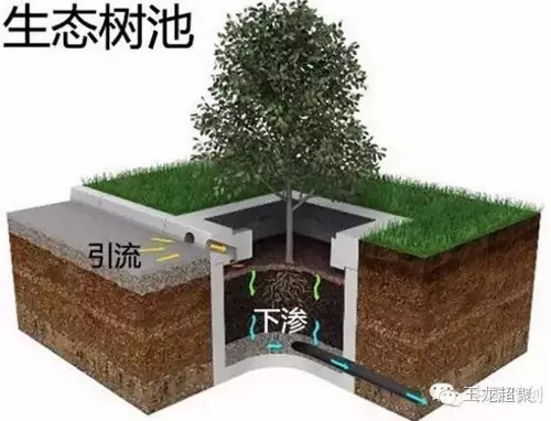 在對于通行或樹蔭要求較高的區域可將單個的樹池作為一個生態滯留單位。