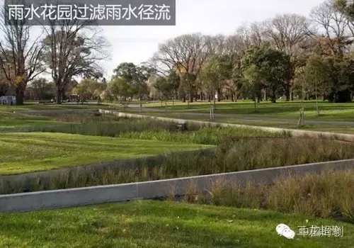 而廣義的雨水花園則可囊括具有調蓄和凈化雨水徑流能力的下沉式綠化設施。如下圖中的墨爾本愛丁堡雨水花園,在調蓄的同時運用生物凈化手段對徑流進行階梯式處理,為其所在公園提供了大量灌溉水。